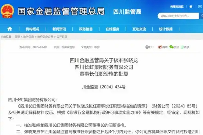 - 長虹集團財務公司法定代表人變更為張曉龍