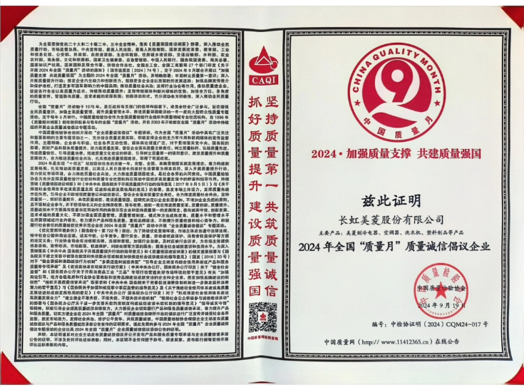 - 入選2024年質量誠信倡議企業 美菱引領行業高質量發展