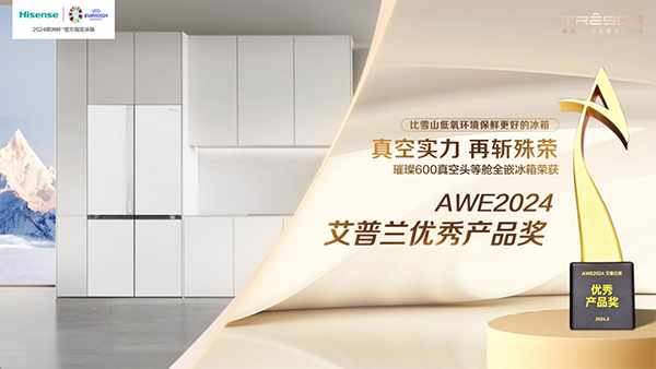 - 3月16日,2024AWE艾普蘭獎正式揭曉。海信璀璨600真空頭等艙全嵌冰箱憑借其行業領先的“真空+全嵌”功能,斬獲優秀產品獎。該冰箱憑借正面不凸出、三側不留