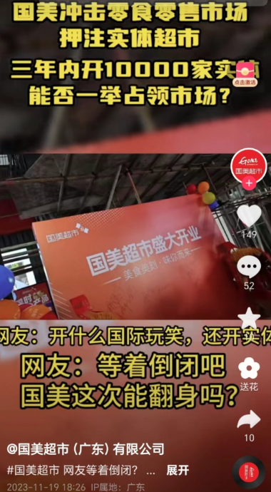 - 欠薪、閉店、退款,今年來(lái),國(guó)美負(fù)面消息不斷,近日,國(guó)美自家又起了“內(nèi)訌”。 今年10月,第一家國(guó)美超市在廣州營(yíng)業(yè)。從其宣發(fā)視頻等信息來(lái)看,零食是其主要銷(xiāo)