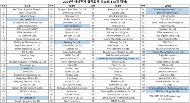 - 據 thelec 報道,三星電子公布了 2024 年合作公司名單,這份名單占三星電子零部件采購額的 80% 以上,共有 113 家公司,其中新增 11 家公司,另有 11 家公司被剔除。▲ 藍色