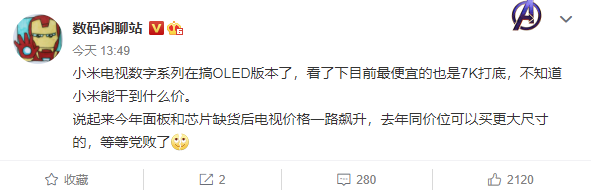 漲價大潮來襲,消息稱小米電視數字系列將推出 OLED 新品