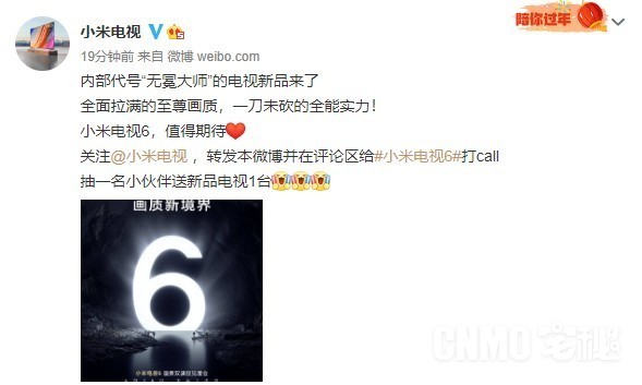 小米電視6官宣:6月28日下午見 “畫質(zhì)拉滿 一刀未砍”