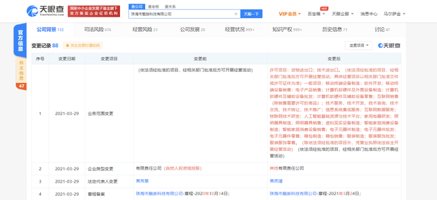 【家電資訊-家電新聞 - 上市企業,作者:編輯】4月1日上午消息,天眼查App顯示,3月29日,珠海市魅族科技有限公司發生多項工商變更,黃秀章退出法定代表人職位,由黃質潘接任。同時,經營范圍新增“虛擬現實設備制造;智能家庭消費設備制造;電子元器件制造”等。珠海市魅族科技有限公司成立于2003年3月14日,注冊資本約3.8億。