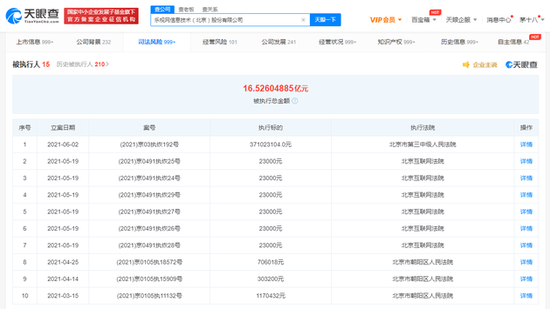 【劃重點】: 6月4日上午消息,天眼查App顯示,近日,樂視網(wǎng)運營主體樂視網(wǎng)信息技術(shù)(北京)股份有限公司新增一條被執(zhí)行人信息,案號(2021)京03執(zhí)恢192號,執(zhí)行標(biāo)的約3.71億人民幣,執(zhí)行法院為北京市第三中級