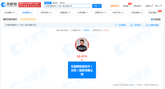 樂視網(wǎng)被強制執(zhí)行3.71億 賈躍亭為該公司最大股東