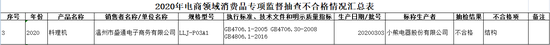 其中,不合格情況匯總表中第3項顯示,標稱小熊電器股份有限公司(以下簡稱“小熊電器”,002959.SZ)、由溫州市盛通電子商務有限公司銷售的料理機(規格型號:LLJ-P03A1;生產日期/批號:20200303)不合格。不合格項為結構,執行標準、技術文件和明示質量指標為GB4706.1-2005 GB4706.30-2008 GB4806.1-2016。