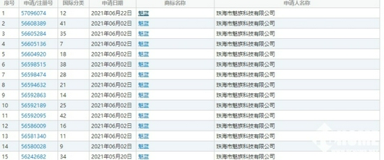 根據(jù)國家知識(shí)產(chǎn)權(quán)局商標(biāo)局的商標(biāo)查詢來看,從今年5月20號(hào)至6月22號(hào),魅族申請(qǐng)了一系列魅藍(lán)商標(biāo),國際分類涉及到各個(gè)分類,比如科學(xué)儀器、通訊服務(wù)、網(wǎng)站服務(wù)等等,點(diǎn)開查看都是屬于申請(qǐng)中狀態(tài)。