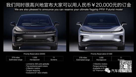 此外,還有FF 91 Futurist,優先預訂金額為2萬元人民幣,預計將在12個月內交付。