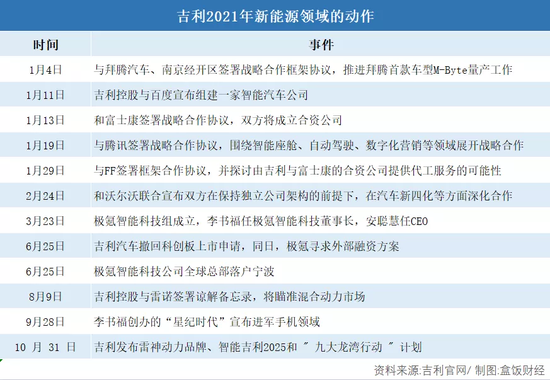 從今年的動作來看,李書福對于吉利的轉(zhuǎn)型已經(jīng)迫在眉睫。如在1月份,與騰訊簽署戰(zhàn)略合作協(xié)議,圍繞智能座艙、自動駕駛、數(shù)字化營銷等領域展開戰(zhàn)略合作;10 月份,吉利發(fā)布 " 九大龍灣行動 " 計劃, 5年研發(fā)投入1500 億元、2025 年實現(xiàn)自動駕駛?cè)珬W匝幸约?5年內(nèi)推出 25 款以上全新智能新能源產(chǎn)品等。