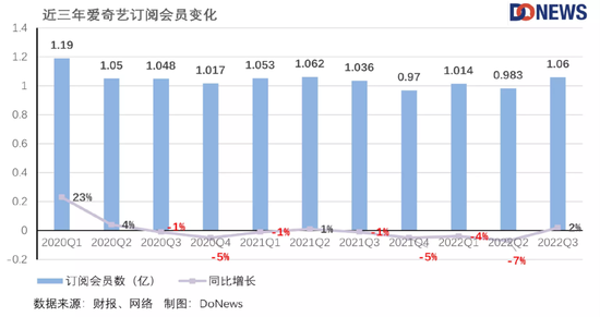如今,長視頻平臺無論是月活躍用戶人數(MAU)還是VIP會員數,增長的空間都愈發有限,提升會員價也成了長視頻平臺的必然選擇。從愛奇藝今年第三季度財報的收入來源上可以看出,愛奇藝占比過半的會員服務實際已經連續兩季度下跌。去年12月,愛奇藝的月卡和季卡價格上調了9%,這一舉措讓愛奇藝去年第四季度的月均單會員收入增長到了14.16元,而去年第四季度愛奇藝的會員服務收入實現了同比7%的增長,達到了41億元。