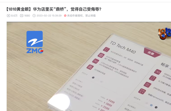 除了線下銷量并沒有起到填補華為市場空缺的作用,鼎橋手機與華為手機的復雜關系,反而經常因為在線下導購時被模棱兩可地介紹為‘華為智選手機’,讓最終想要購買華為手機,但最后被引導購買了鼎橋手機的用戶產生自己買到‘盜版華為手機’的感覺。相關的維權新聞自 2020 年之后就經常見諸于黑貓投訴以及視頻網站等平臺。
