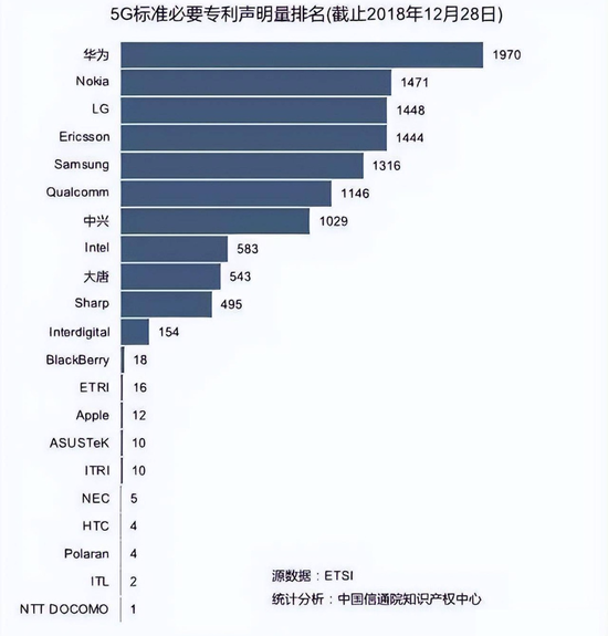 除了規避制裁,諾基亞作為如今移動通信領域,在 5G 標準必要專利聲明量排名中,諾基亞以 1471 件專利的數量成為僅次于華為的第二大 5G 專利擁有者。