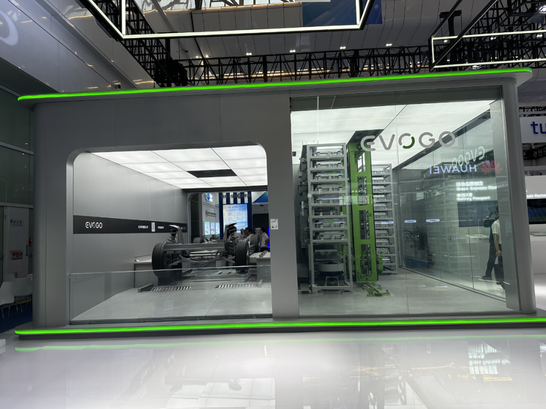 記者來到寧德時代的展區,寧德時代展示了其EVOGO換電站,并現場展示了換電服務流程,設備靈活抓緊隔壁的巧克力換電塊,不到一分鐘便完成整個換取流程。