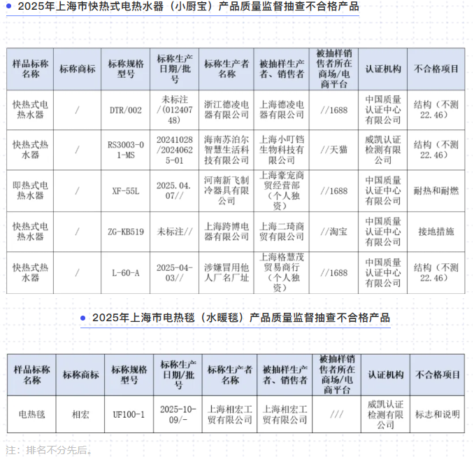 - · 可能觸電,6批次產(chǎn)品質量監(jiān)督抽查不合格(附抽查不合格名單)