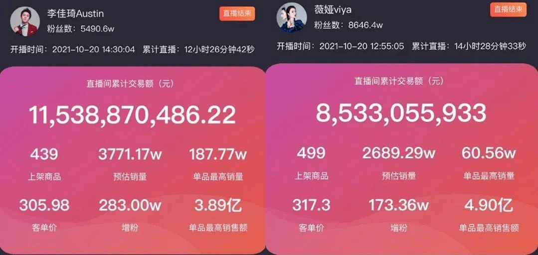 2021年雙11之后,局長曾經寫過一篇《綁架了中國消費者的直播間,正在扼殺新國貨?》,那一年是兩大超級主播的巔峰,雙11預售的第一天,薇婭+李佳琦一共創造了200.72億人民幣的銷售額。