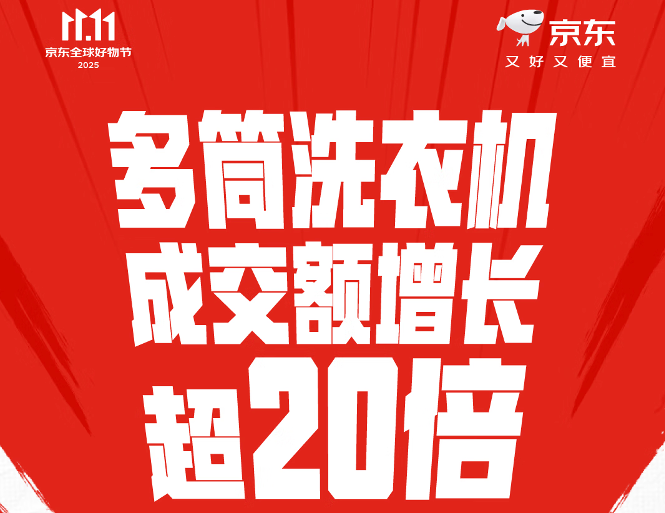 - · 京東家電家居11.11火爆開局:多筒洗衣機增長20倍、制冰冰箱增長5倍