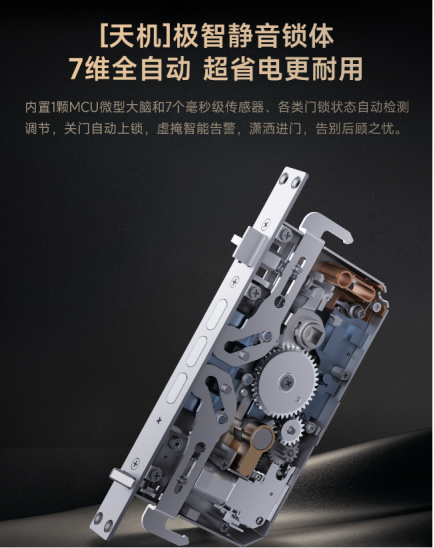 內(nèi)置的7顆高精敏傳感器確保了鎖舌伸縮到位、門虛掩等狀態(tài)精準(zhǔn)監(jiān)測,它擁有7.2N.m大電機(jī),力量十足,開關(guān)門都很有信心,最重要的是還可以省電50%,續(xù)航更持久。