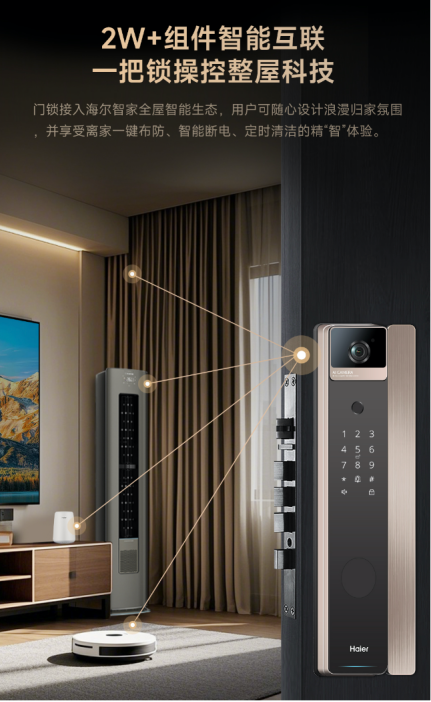 這才是海爾金吾衛(wèi)S900真正的“殺手锏”,它配備智能聯(lián)動(dòng)功能的S900門鎖,讓回家充滿儀式感:開門瞬間,玄關(guān)與客廳燈光自動(dòng)柔亮,窗簾悄然合上,空調(diào)和新風(fēng)隨之啟動(dòng),背景音樂輕輕播放,無縫銜接的響應(yīng)速度打造出一步到位的歸家體驗(yàn)。