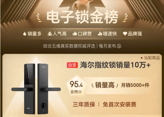 海爾智能門鎖上榜京東電子鎖金榜TOP4