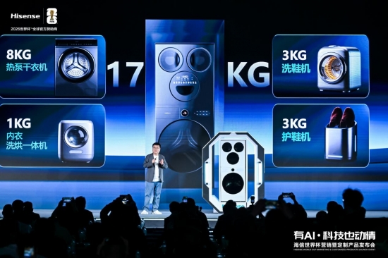【劃重點】: 3月5日,海信在 2026 年世界杯營銷暨定制產品發布會上,重磅發布海信全家筒?棉花糖 U7S、大薄荷 E5S 兩款四筒洗衣機新品,以全球首創 6 合 1 熱泵洗護站再度引領多筒洗護賽道創新!海信集團中